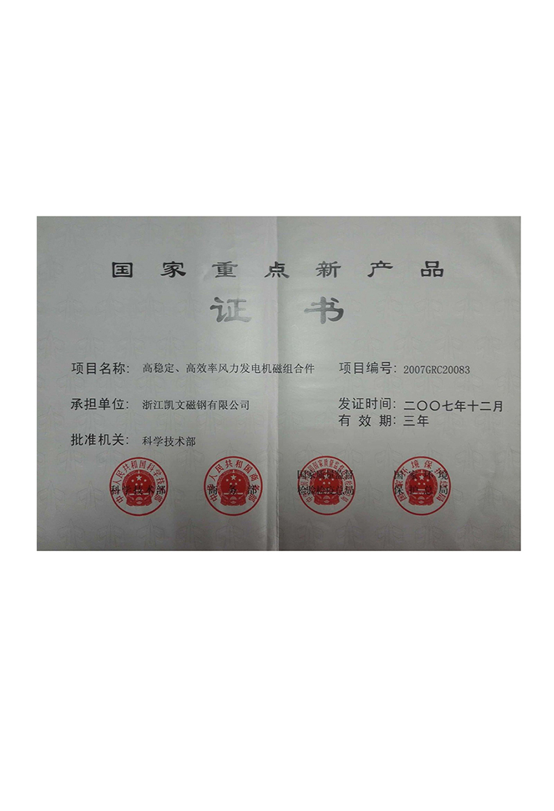 國家重點新品證書