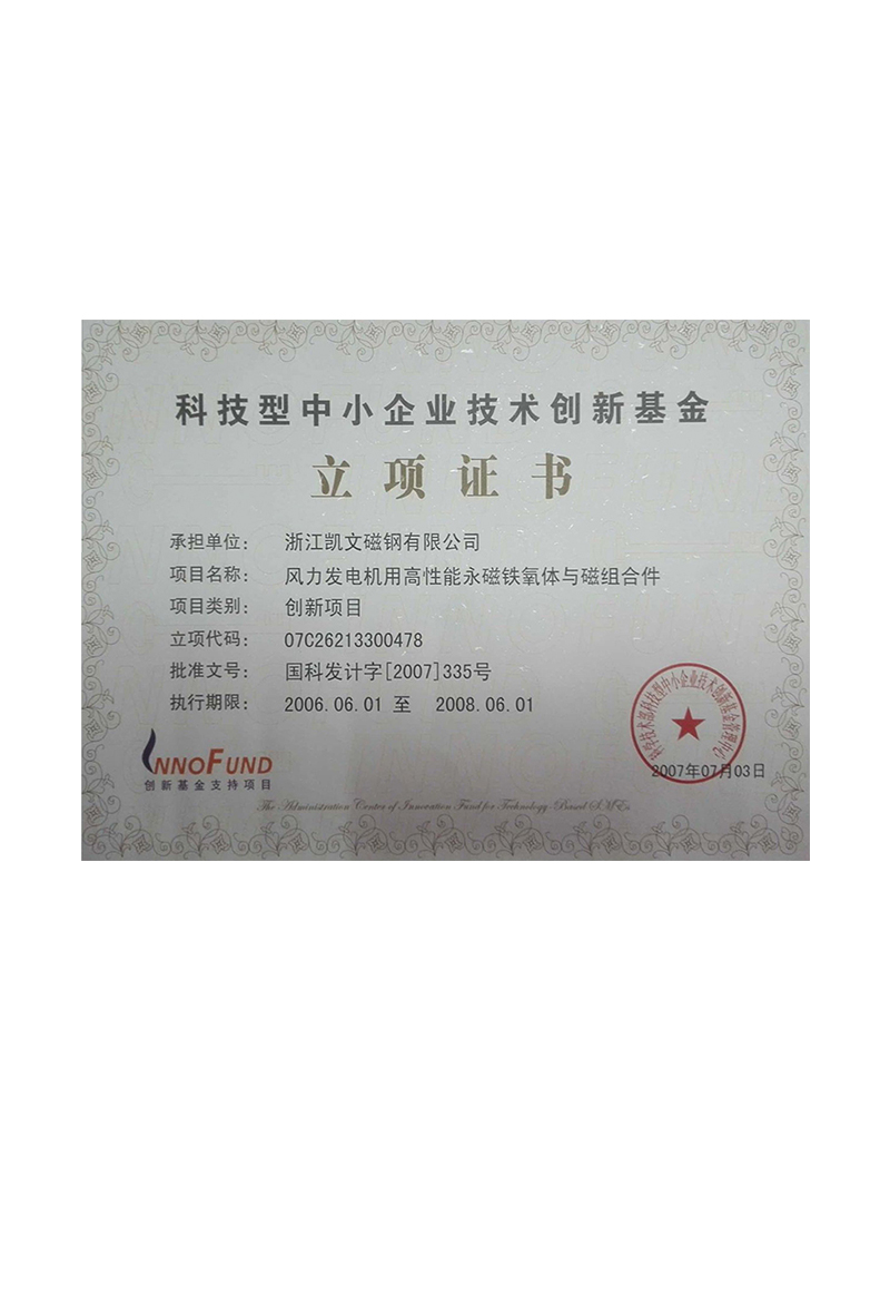中小企業創新基金證書